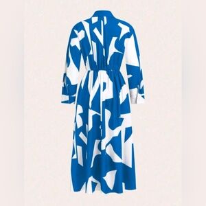 Ladies' Allover Print Lapel Belted Dress With Pockets, Long Sleeve, Summer Maxi