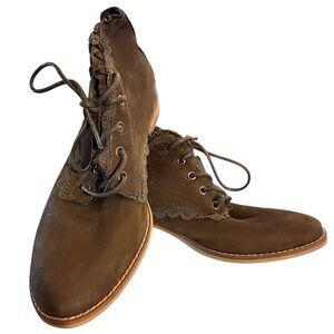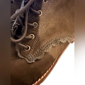 Gianni Bini Women’s Leather Lace Up Ankle Booties With Lace Trim.