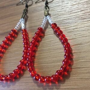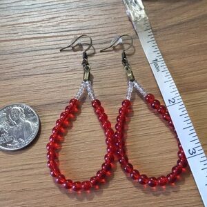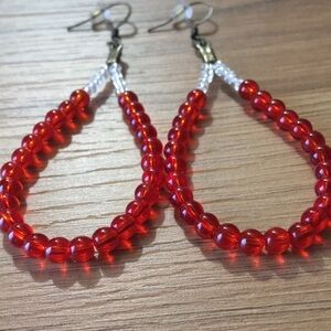Ladies Beaded Earrings, Red and Clear, Handmade Ladies Earrings