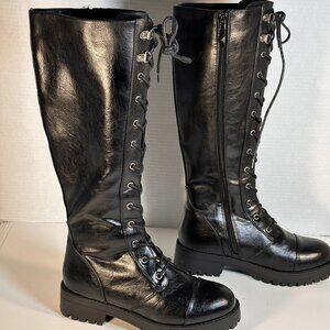 Tall Black ladies' leather boots, 13 eye lace-up with full side zippers. New and never walked in