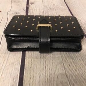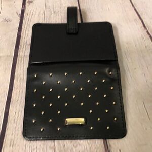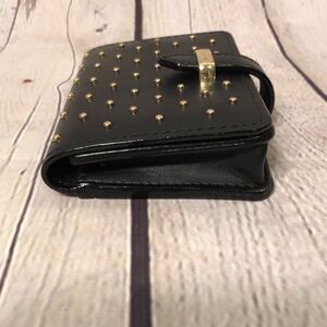 Black pleather wallet with small goldtone studs on the front