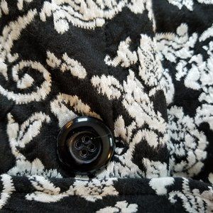Roz & Ali Black & White Printed Jacket/Buttons & Belt/Lined/Size Small