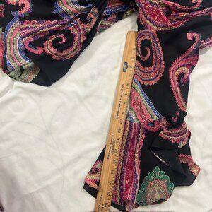 Ladies Blouse Large Black Multicolor Flared Sleeves Accordion Pleats read