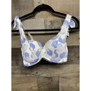 🐚 Ladies Blue White Sea Shell Floozie Frost French Bikini Top Size 32 E