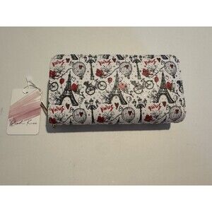 BLUSH KISS CHIC PARIS PRINT WALLET WHITE BLACK AND RED NEW