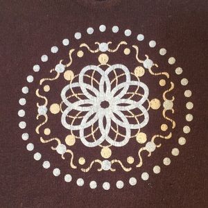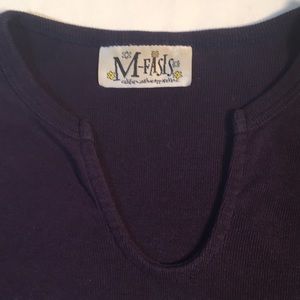 M-Fasis/California Blue Apparel Ladies Top, gently worn condition. 100% cotton, machine wash. Navy with lighter blue Boho pattern on front and sleeves. Would fit Girls Large or Juniors/Ladies Small.