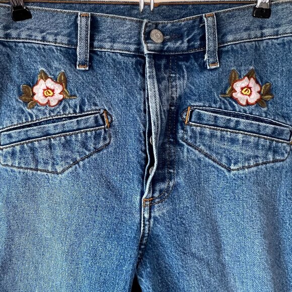 Ladies Boyish by HER Jeans Size 27 Blue Wash Billy Embroidered Button F…