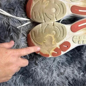 Small stain on top of one shoe also bottom of one is messed up pretty bad
