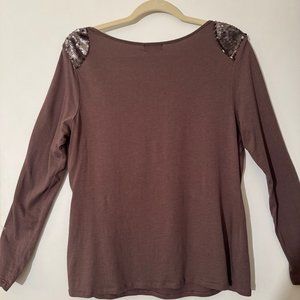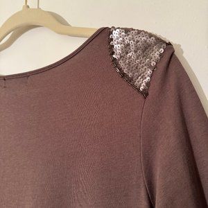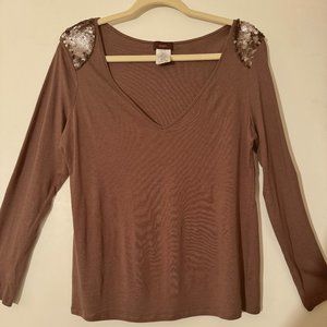 Ladies Brown Shirt w/ Sequined Trim