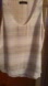 Elegant tank with soft stripes, cream, white, gray. Ideal for layering or solo wear. Authentic Calvin Klein, size medium, scoop neckline, layered look, sleeveless, 100% polyester, machine wash. Gently used, original owner, closet kept, purchased from a fine retail store.