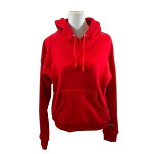 Ladies Champion Reverse Weave Red Plain Front Hoodie Sweatshirt Size Small