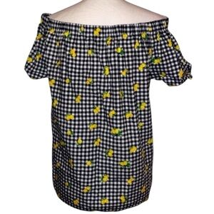 Ladies Chloe + Rene Brand Gingham Patterned BLK WHT Blouse w/Lemon Details SZ XL