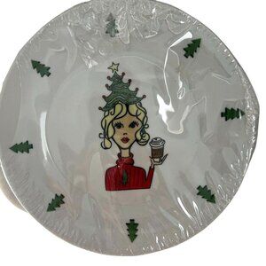 Ladies Christmas 4 Dessert Plates '02 Dishwasher Microwave Safe New Original Box