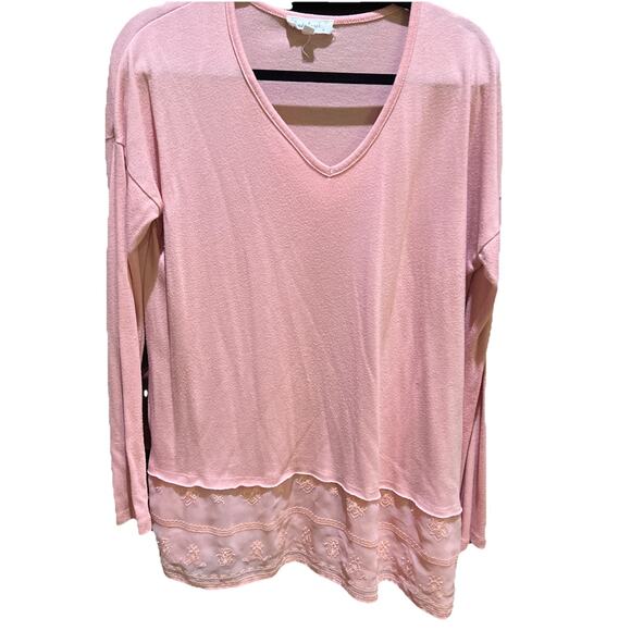 Ladies Cloud Chaser Pink Knit Top Lace Hemline Size XL