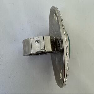 Ladies Cocktail Costume Jewelry Ring Silver Tone Band Faux Turquoise Adustable