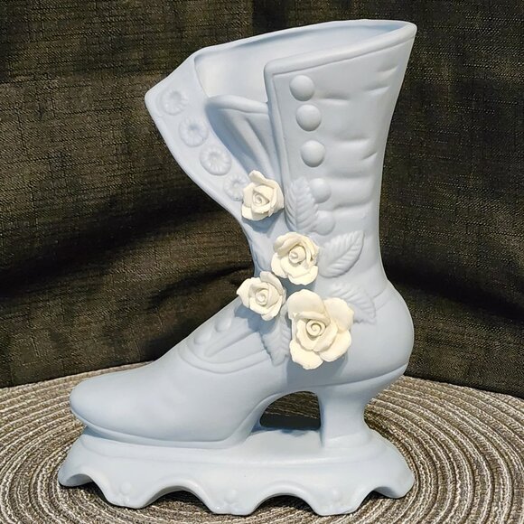 Ladies Concepts Int Light Blue Porcelain Capodimonte Boot Shoe Vase 7in Tall