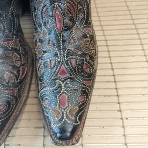 Ladies Corral Boots A1951 Black~Cognac~Red Goat leather Laser cut-outs, Snip Toe~Western SIZE 8.5M