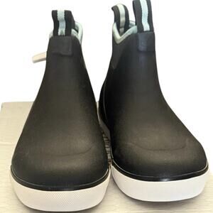 Ladies Deck Boots Sz 6M, Black Waterproof Slip-On w/ Pull Tabs Non-Marking Sole