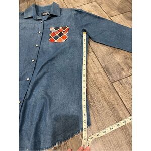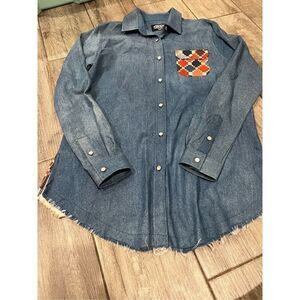 Ladies Denim Long Sleeved Shirt, Colorful Back Insert, Size Small