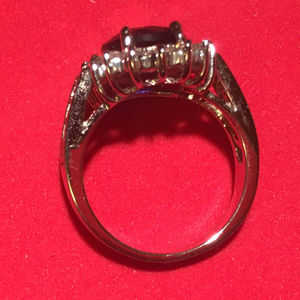 NEW~Elegant simulated "Diana" sapphire and diamond ring set in a sterling silver mounting. Rhodium finish to prevent tarnish. Size 9 A nice weight,well made mounting.