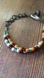 A dangling charm near the clasp made of a stacked disc bead and smaller accent beads in similar earthy tones.