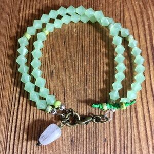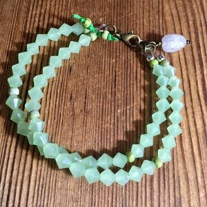 Ladies Double Strand Lime Green Beaded Bracelet, Handmade Ladies Bracelet