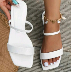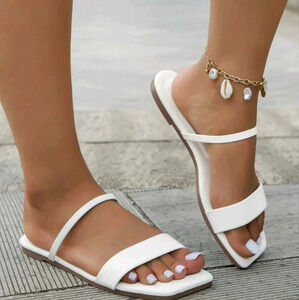 Ladies' Double-strap Beach & Travel & Casual Slides With Flat White Sole