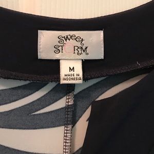 Navy and White zebra print dress with 3/4 sleeves. Good condition no stains or holes
