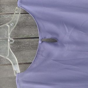 Ladies Purple 💜 dress blouse, sheer sleeves and fully lined. 100% polyester and washable. Size Large, 24" length, 18" sleeves and 21" across chest front. Great condition.