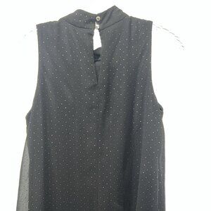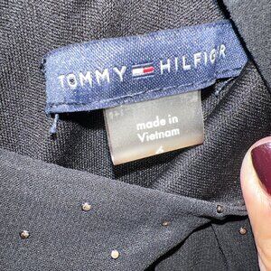 Elevate your wardrobe with this stunning Tommy Hilfiger swing style dress! This dress is perfect for any occasion, featuring a mock turtleneck and sleeveless design giving you a classic yet modern look. The A-line style dress, in chic black with rose colored dot accents falls to knee length making it perfect for a night out or a special occasion. Back button detailing adds a touch of elegance to this fashionable piece. Available in size 6, this dress is a must-have for any fashion-forward woman.