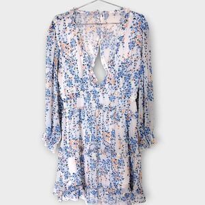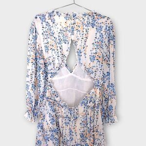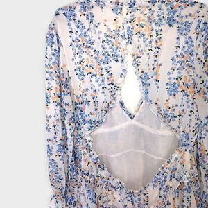 Ladies Dress Sz XL Ruffles Floral Blue Low V Open Back Coquette Cottagecore Shee