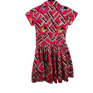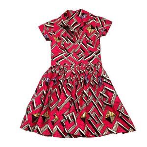 Ladies Dutch Wax Print A Line Collared Short Sleeve Dress Size Small