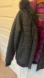 Black down with purple camo lining. Full zip and button and has cord at hem and around hood for additional protection from the weather