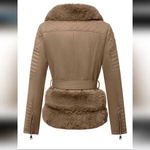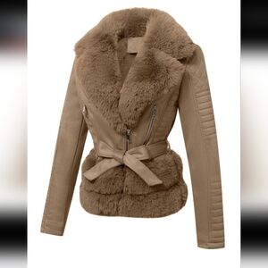 Ladies' Elegant And Warm Fluffy Collar Short Jacket With Adjustable Waist Belt