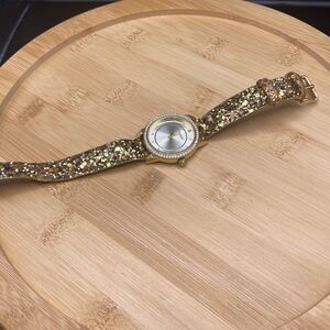Ladies Express 30 meter water resistant watch w/glittered genuine leather band