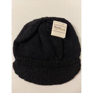 Ladies Fair Trade Handmade Nepal 100% Wool Beanie Hat Cap Set Of 2 Black Gray.