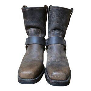 Ladies size 5.5M. These are in very good, lightly used condition. These are brown with a distressed leather look. Heel height is approx. 1.5 inches. Total boot height is about 8.5 inches. Please review all photos before purchase.
