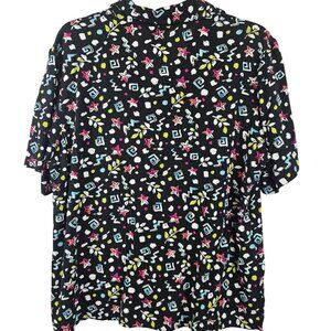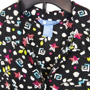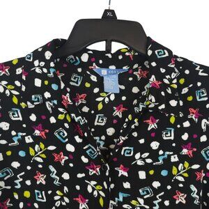 Ladies Fun Party Retro 90s Funky Abstract Graphic Allover Black White Koret XL
