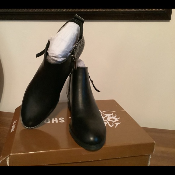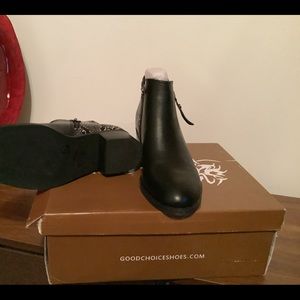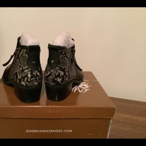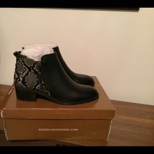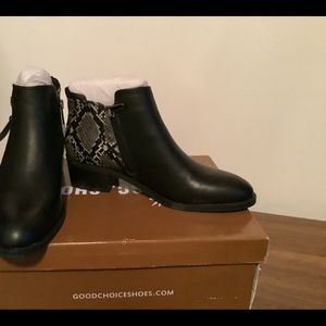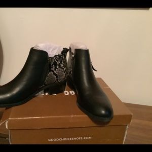 Ladies Good Choice Lamar black with grey python print on heel , zip sides size 8.5 new in box