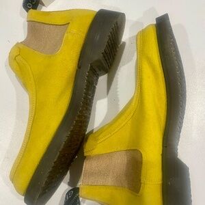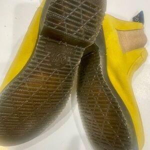 George Cox has been crafting footwear since 1949. Worn by postwar British underclass and Rockers like Johnny Rotten,Joe Strummer and Supermodel Agyness Dyn in the ‘70s and picked up by today’s groovers. For over 100 years, known for its highest standard of workmanship with the finest materials, air sealed oil resistant and comfortable air seal cushion soles and perforated foam inserts for greater shock absorbency. Look smartly by matching yellow George Coxes with pencil skirt or jeans for fantastic silhouette. Bears the British Goodyear Welted footwear seal of excellence. Priced for quick sale.