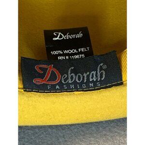 Stunning "Deborah Fashion" vintage ladies hat in size 23. Crafted from luxurious gold wool, adorned with an elegant feather and velvet accents. A statement piece that brings back the charm of yesteryears.