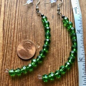 Ladies Green Clear Long Clear Beaded Dangle Earrings, Handmade