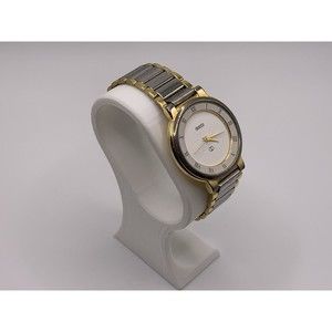 This watch does not work; even with the battery replaced. It likely needs a new quartz movement (super inexpensive). Some minor scuffs and discoloration as shown in photos. All original links included. No box or papers.