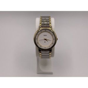 This vintage watch for ladies by Gucci is perfect for that special someone! Featuring a 12-hour Roman numeral dial, a solid 18k gold plated bezel, and a silver and gold bicolor bracelet, this watch is sure to catch someones attention!