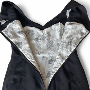 This dress is an absolute wardrobe essential. Its timeless black color makes it a versatile piece that can be dressed up or down with ease. The fitted shift design and flattering V neckline are classic and comfortable, while the silver floral lining adds a unique touch. Perfect for both professional settings or a night out, this dress is a must-have!