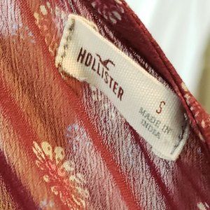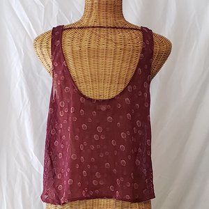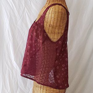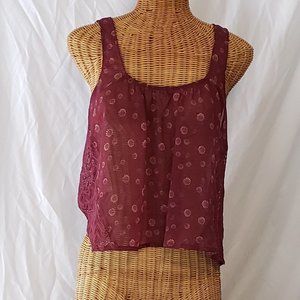 Ladies HOLLISTER Floral Sheer Crop Top in Burgundy - S