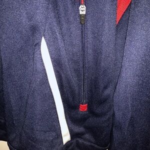 Ladies, two XL Holloway pull over shirt/jacket blue with white and red accents. Very good condition. Measurements pit to pit 25 inches top to bottom 31 inches measurements are approximate.