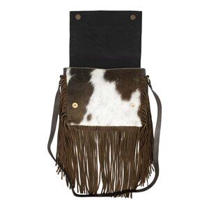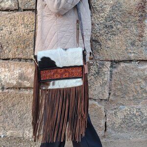 Ladies Hand Tooled Bag with Fringes, Hair On Leather Bag