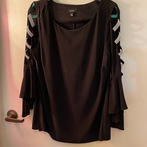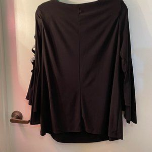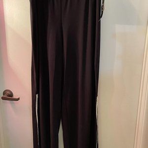 Holiday Outfit with Blouse /Pants and Shoes. Black with Rhinestones on the sleeves of the blouse and the lower leg of the pants (elastic waist) with a slit. Shoes are Skeckers with Memory foam, black also with Rhinestones.