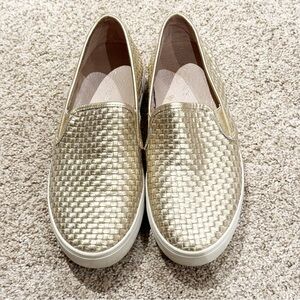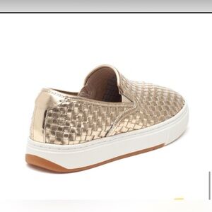 This is one of our most beloved silhouettes of all time. Our classic, woven leather slip-on sits on a fashion forward white platform with gum rubber combo sole.